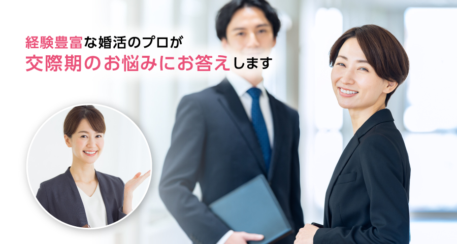 交際が順調に進んでいけば、ご成婚に向けたステップを進めていきます。それぞれが納得しながら結婚に向けて進んでいけるようにサポートします。双方の気持ちをお聞きしながら、プロポーズする時期もご一緒に考えます。